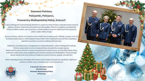 KWP - Życzenia świąteczne Kierownictwa Komendy Wojewódzkiej Policji w Poznaniu